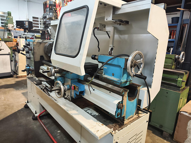 Torno cilíndrico marca PINACHO modelo S-90/200 Distancia entre puntos 1150 Mm Altura de puntos 200 Mm Diámetro admitido Sobre bancada 400 Mm Diámetro admitido sobre escote 600 Mm Diámetro admitido sobre carro longitudinal 370 Diámetro admitido sobre carro transversal 210 Mm Anchura de la bancada 300 Mm Longitud del escote 160 Mm Agujero del husillo principal 52 Mm Cono Morse del husillo principal 4 Numero de Velocidades 12 Gamas de Velocidades 40-2200 R.P.M. Diámetro de la Caña del contrapunto 58 Mm Recorrido de la caña del contrapunto 155 Mm Cono Morse del contrapunto 4 Potencia del motor principal 4 KW Potencia de la Motobomba 0,06 KW Peso de la Maquina 1130 Kg Torreta cambio Rápido dos Posiciones 4 Porta Herramientas Plato de Tres garras Diámetro 200 Mm Garras Interiores y Exteriores Luneta Fija Punto Giratorio Porta brocas N.º 44503 Año 2002 Con normas de seguridad Marcado CE